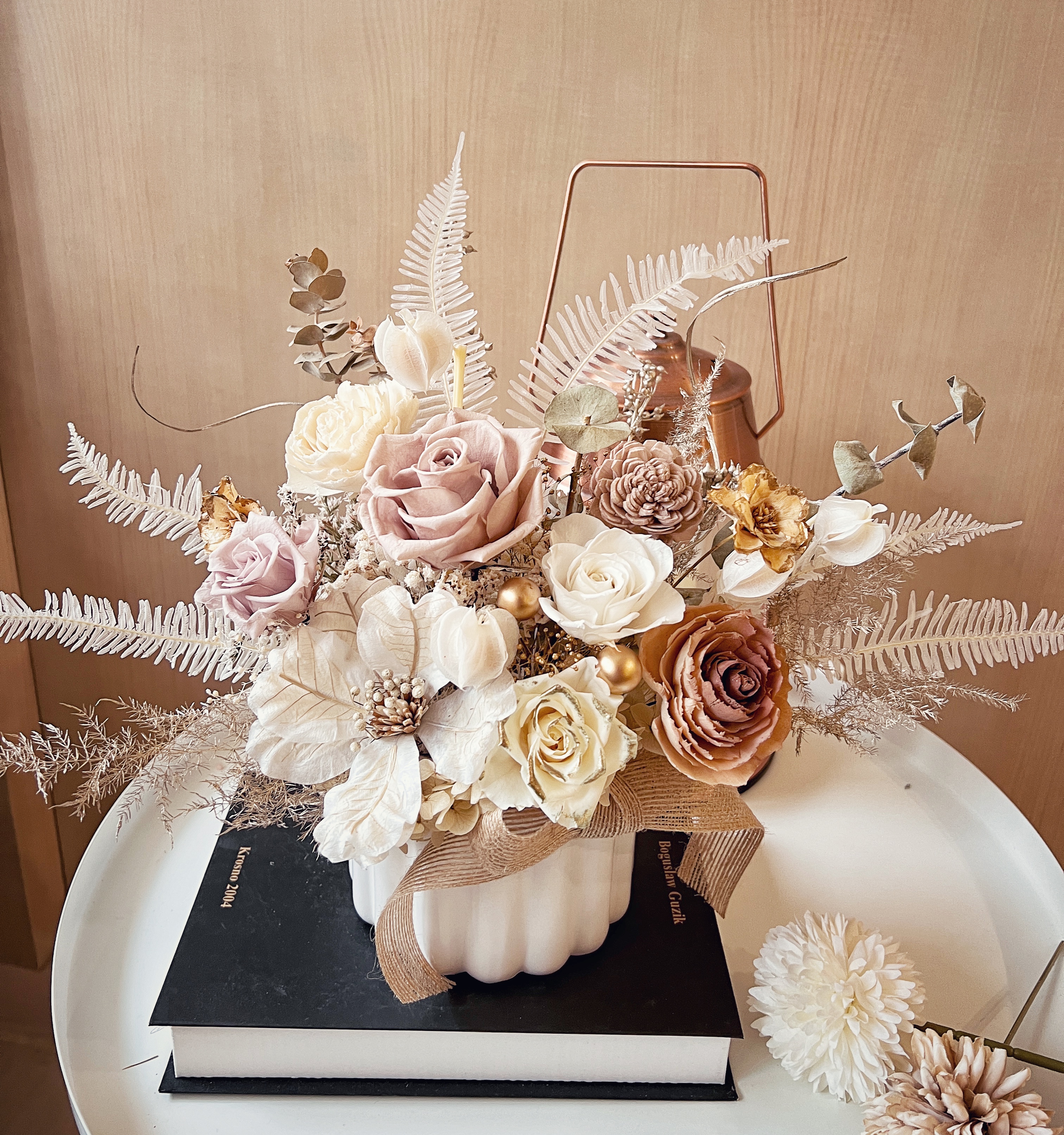 1.花藝作品皆為Nikki Atelier團隊親自創作設計,為您挑選當季花材設計,依時節/節慶設計出最合宜的花卉藝術,如遇花材缺貨情形,將以相似花材做替代,不影響整體設計。