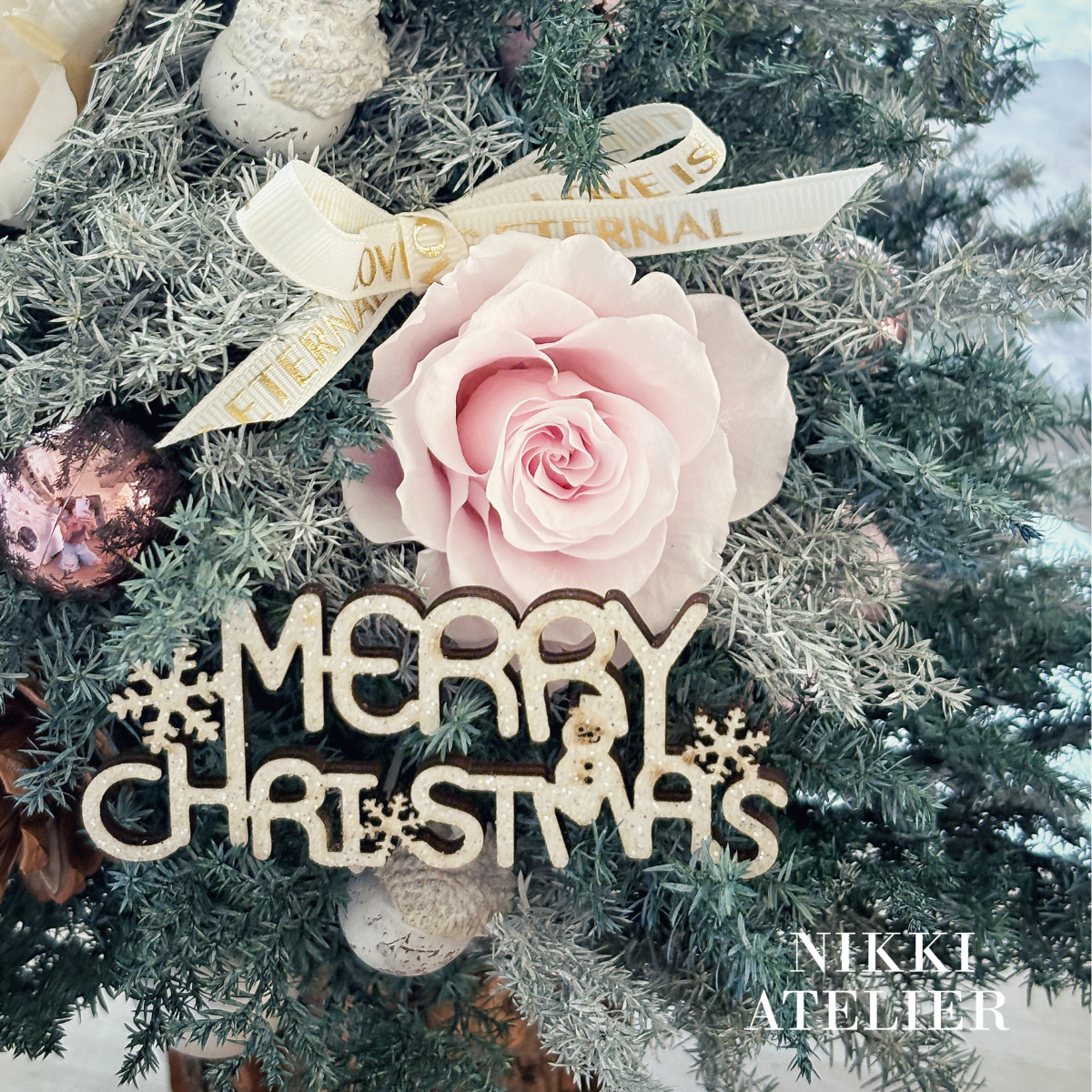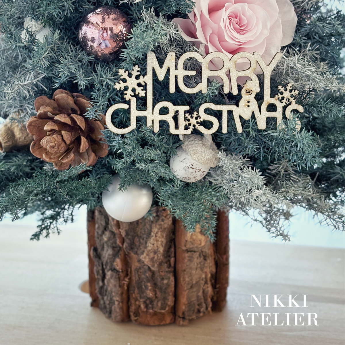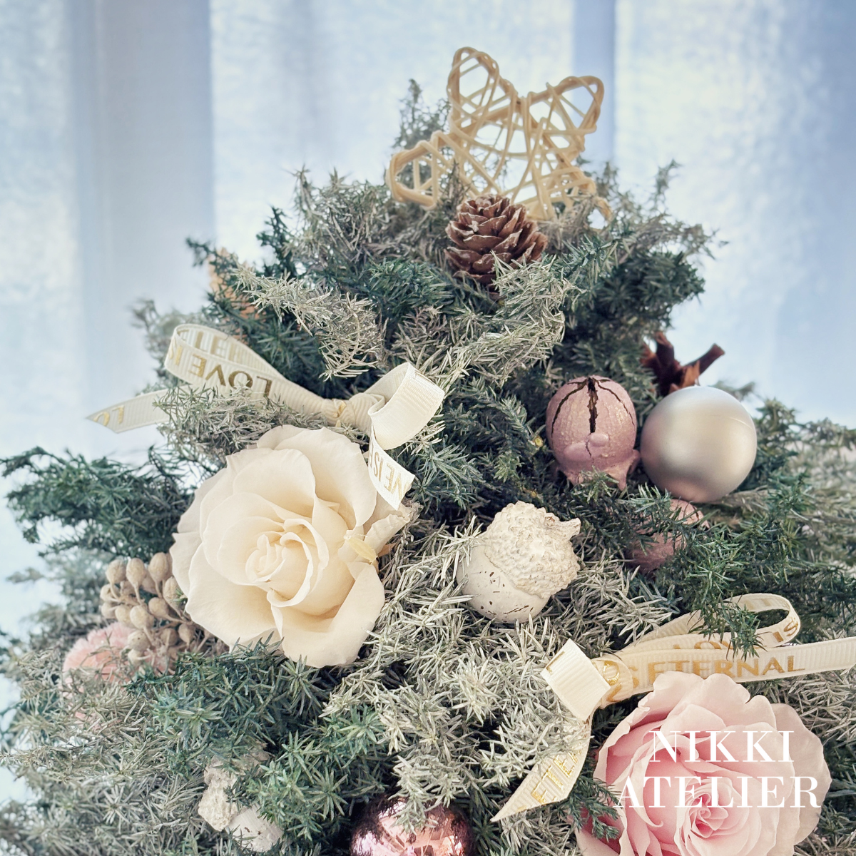 Nikki Atelier花藝設計以粉白色為主色調,使用各式永生果實&葉材,設計出本款經典聖誕樹,飄散出濃濃雪松香氣,是喜愛聖誕節風的您,千萬不可錯過