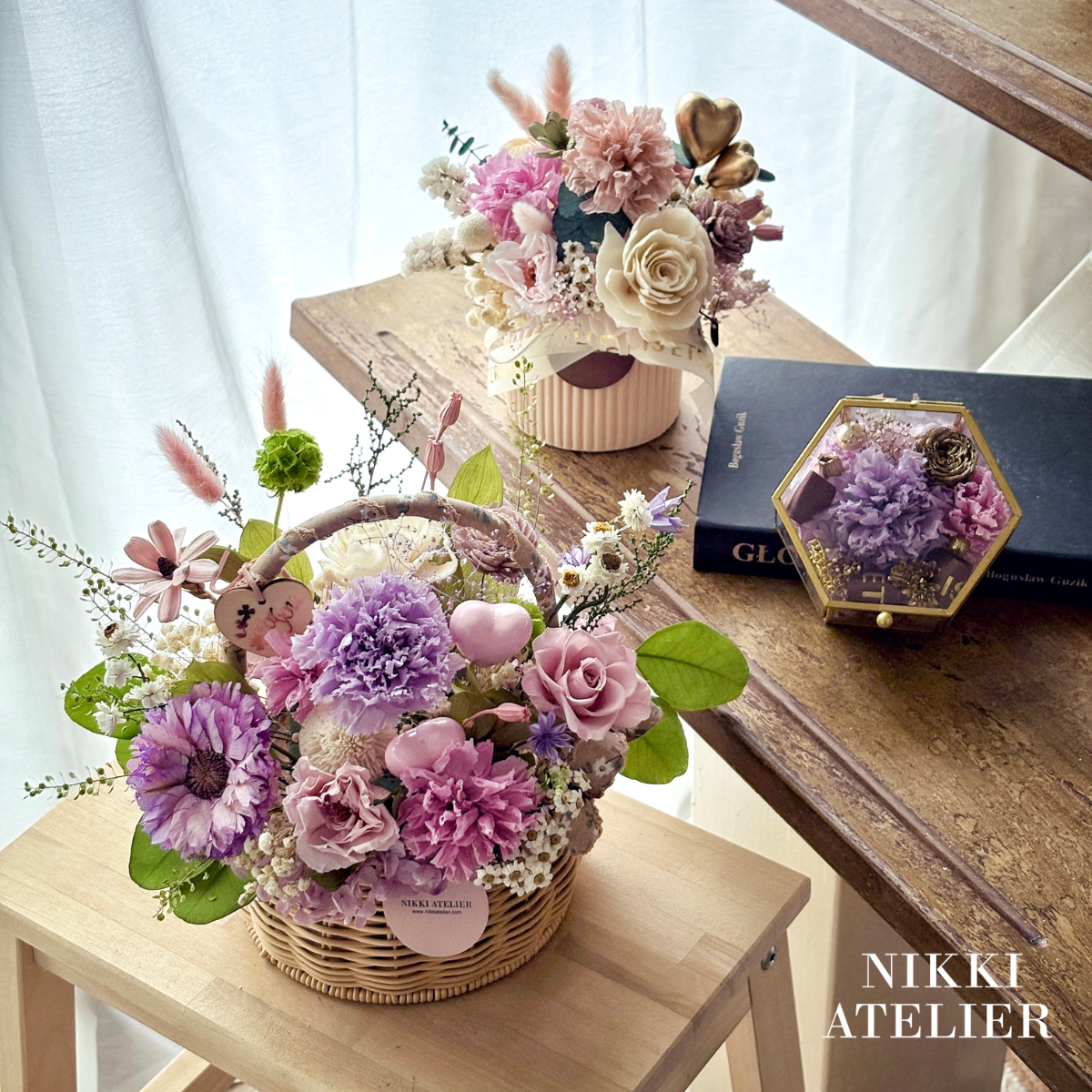 1.花藝作品皆為Nikki Atelier團隊親自創作設計,為您挑選當季花材設計,依時節/節慶設計出最合宜的花卉藝術,如遇花材缺貨情形,將以相似花材做替代,不影響整體設計。